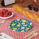 Prato De Papel Padrão de limão de verão em azul Marinho