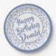 Prato De Papel Padrão de Número Aleatório de 100 Festas Azul/Bran