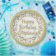 Este design numérico tem um padrão de números aleatórios de ouro e branco com um número de referência de ouro 30 repetido em tamanhos e ângulos variados. Há um círculo branco no centro para seu texto e anéis dourados e brancos ao redor da borda. . Uma ideia legal para o seu aniversário de 30 anos ou para todas as ocasiões, pessoal ou profissional, onde você apresenta o número trinta. Simplesmente mude o texto para alinhar com a sua ocasião especial.