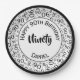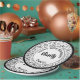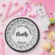 É fácil personalizar este design único com seu nome, inicial ou monograma usando os modelos de texto fornecidos. Este tema sobre a colina tem um padrão aleatório de números preto e branco com o número do marco 90 repetido em tamanhos e ângulos variados no fundo. Há um círculo branco no centro para o seu texto, e anéis pretos e brancos ao redor da borda. Esta é uma ideia legal para a sua festa de aniversário "Grande 9-0", 90 ou para todas as ocasiões e eventos em que você comemora o número 90.