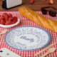 É fácil personalizar este design único com seu nome, inicial ou monograma usando os modelos de texto fornecidos. Este tema sobre a colina tem um padrão de número aleatório azul e branco com o número do marco 90 repetido em tamanhos e ângulos variados no plano de fundo. Há um círculo branco no centro para o seu texto, e anéis azuis e brancos ao redor da borda. Esta é uma ideia legal para a sua festa de aniversário "Grande 9-0", 90 ou para todas as ocasiões e eventos em que você comemora o marco número 90.