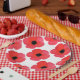 Placas de papel impressas com padrão de papoila de cor d'água original.