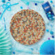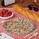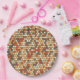 Pratos de festa com padrão moderno com pontos em tons retrô.