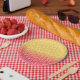 Prato De Papel Padrão de xadrez do gradiente vermelho amarelo