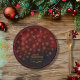 Papéis redondos de Natal Festivos Personalizados Feliz Pratos em fundo vermelho-borgonha com um padrão elegante de ouro. Você pode atualizar todo o texto, alterar o nome da família ou usar um nome de casal ou um nome comercial.