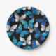 Prato De Papel Padrão Escuro Sem Costura com Borboletas Azuis Mor