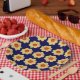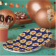 Adicione elegância a festas, piqueniques e encontros sociais com essas bonito placas de papel que apresentam a foto de uma flor amarela Dahlia em um fundo azul marinho e impressas em um padrão repetitivo. Um design floral divertido! Selecione o estilo e o tamanho da sua placa de papel.