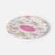 Adicione um toque feminino e bonito à decoração da sua mesa de festa com este prato de papel de flores em aquarela. O prato tem um padrão de rosas pastéis rosa, azul e amarelo. Adicione um nome e inicial de monograma para um toque personalizado, ou vá para a área de personalização para remover.