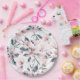Prato De Papel Padrão Floral de Aquarela Rosa e Cinza