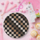 Prato De Papel Padrão Gingham Preto-Castanho Verificado
