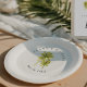 Moderno e chique, essas placas e tigelas de papelão apresentam uma elegante tipografia ao redor de uma bela pintura aquosa de palmeiras tropicais. Pintura inspirada pelo litoral de Barbara, Papais noeis. suite de casamento correspondente ao cheio disponível.