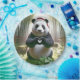 Um panda fofo vestindo um chapéu de Papai Noel forma uma forma cardíaca com suas patas enquanto sentado numa exuberante floresta de bambu