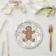 Aqui está um homem feliz com pão-de-gengibre num pano de fundo de flocos de neve com pão-de-gengibre gelado. Aproveite a estação!