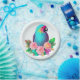 Prato De Papel Papagaio Azul Tropical com Flores Tropicais