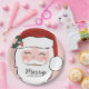 Este design de placa de papel apresenta Papais noeis alegres voltados para um fundo cor-de-rosa com a saudação "Feliz Natal" no Papai noel.