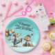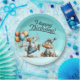 Uma Placa De Papel Azul Feliz De Aniversário Com Dois Patos Celebrando