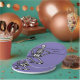 Placa de papel de festa mostrada em roxo com um impressão de esqueleto de Halloween. Mostrado é do tamanho de 7". Personalize esta placa ou comprar como está.