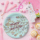 Moderno e espantoso design de cor d'água floral em uma lágrima à luz do na moda. Produtos de papel para o próximo evento especial. O texto de aniversário feliz pode ser personalizado para se adequar a qualquer celebração especial, incluindo casamento, ou aniversário especial, ou evento corporativo. Personalize esses produtos de papel de rico para coordenar seu dia especial.