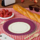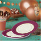 Em ocasiões especiais ou pratos de papel do dia a dia concebidos para parecerem pratos de porcelana em design. Decorado com um fundo marfim com uma nova sombra da jante colorida do gabinete e uma cor interna coordenadora do jato. Comprar como está ou personalizar. Coordena com placemats e guardanapos de papel.