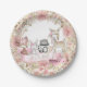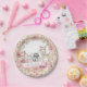 Pratos de papel para chá de bebê de menina com animais de bebê fofos em um lindo fundo floral em aquarela. Estes pratos de papel para chá de bebê da floresta podem ser facilmente personalizados com seu texto.