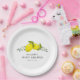 Este prato de papel para chá de bebê fofo e elegante apresenta um fundo branco com limões, flores brancas e folhas verdes. Altere a cor do fundo e personalize-o para suas necessidades. Você pode encontrar produtos correspondentes na minha loja.