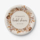 Este prato de papel para chuvada de noiva elegante apresenta uma bela moldura de folhas de laranja queimada e terracota pintadas à mão em aquarela boho, dálias creme e bege, e belas rosas cor de ferrugem em um fundo bege. Encontre itens correspondentes na Coleção de Chuvada de Noiva Romance de Outono.