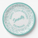 Prato De Papel Parabéns 70 Teal/Padrão do Número Branco