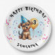 Feliz Aniversário Puppy Aniversário Plate de Papel. Celebre o seu aniversário com o nosso adorável prato de cachorrinho "Feliz Aniversário"! Posicione um filhote lúgubre com um balão amarelo com a idade da criança nele, cercado por um confete colorido e uma pintura engraçada atrás do filhote. Esta placa de papel é perfeita para crianças que adoram animais de estimação e festas. Com seu design vibrante e alegre, ele dá o tom para um dia cheio de alegria, risos e momentos inesquecíveis de patas. Perfeito para crianças de todas as idades. Personalize com o nome do seu filho e os detalhes da festa.