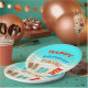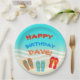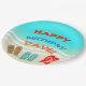 Estes pratos de festas de papel apresentam um tema colorido de aniversário de praia.