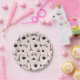 Oh la la! Adicione um toque de chic parisiense à sua festa com nossas placas de papel em cor-de-rosa e preto, cor-de-rosa e preto, com um padrão de silhuetas da torre Eiffel, croissants, macarons, bicicletas, rosas e xícaras de café.