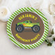 Chapas de papel bonitas para uma festa temática sobre caminhões monstros. Personalize-o com o nome do seu filho.