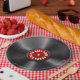 Placas de papel de álbum gravado que são grandes para o disco ou festas de aniversário retros.
