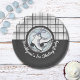 A design apresenta um par de skates de gelo sobre uma crista de floco de neve e um fundo de padrão tartano esbranquiçado. Este elegante design desportivo de inverno serve como pratos de papel bonitos, modernos e únicos, com texto personalizado para patinação no gelo | festas de patinação artística, Natal, festas de eventos ou quaisquer outras ocasiões especiais.