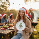 Prato De Papel Passarinho Kiwi Fofo com Chapéu de Elfo de Natal,