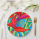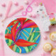 Estas placas de papel apresentam uma abstrato vibrante imagem de um pássaro havaiano de flor do Paraíso cercado por folhagem de palma tropical. Estes pratos coloridos mostram a beleza do paraíso da ilha onde estas lindas flores são encontradas.