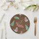 Uma placa de papel de Natal marrom, com um charmoso design de árvores de abeto, pássaros vestidos em suéteres com algas, folhas verdes e ocas, cheios de bagas sagradas e mangas de presentes de Natal, para adicionar um toque único e caprichoso à sua casa este Natal.