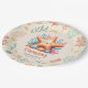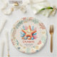This pastel baby shower paper plate features a smiling starfish with seaweed, shells and coral on a soft vintage cream background. The playful ocean design makes it a perfect personalized table detail.
