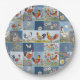 Prato De Papel Patchwork De Denim Com Galinhas E Flores Selvagens