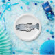 Um peixe prateado que parece morto. Este design parece realmente eficaz nestas placas de papel