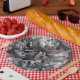 Peony Studio-PAPER PLATES- é uma combinação de flores de pénia rosa-rosa e floral misturadas à fotografia, e de arte digital. A combinação faz um belo e moderno buquê de flores. As cores são azuis de aço, cinzas, pinças molhadas e roxas. Este design está disponível em material de coordenação de peças e outros produtos do Zazzle.