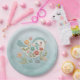 Prato De Papel Pequena Pássaro Azul Flores Rosa Placa de Papel