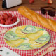 As placas de papel de pera e kiwi com guardanapos de papel misturados e combinados são perfeitas para seu piquenique ou celebração de verão.