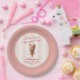 Sirva sorrisos com essas louças personalizadas de chá de panela personalizadas de "Ela está presa". Apresentando um design de cone de sorvete, encantador, contra listras de salão cor-de-rosa pincelado, essas placas são perfeitas para o bar de sobremesa ou para o curso principal. Personalize facilmente o nome da noiva e a data do evento, fazer o especial extra do seu sorvete. © Kimbellish, LLC