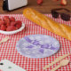 Prato De Papel Personalize estas Bolinhas roxas e brancas