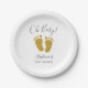 Esta bela placa de papel de Chá de fraldas é decorada com pés de bebê reluzentes de ouro e Oh Baby! em tipografia de na moda. Facilmente personalizável.