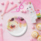 Prato De Papel Pêssego e Aquarela Rosa Floral