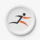 Um símbolo de ícone preto e laranja de uma pessoa em execução. Este design parece realmente eficaz nestas placas de papel