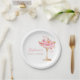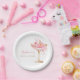 Pratos de papel para Chuveiro Floral de Prosecco e Pétalas de Ouro Rosa apresentam um copo de prosecco dourado e rosa adornado com delicadas flores e pétalas cor-de-rosa. O design é perfeito para um brunch temático Pétalas e Prosecco e celebração espumante e chic. Apresentando caligrafia cursiva graciosa e detalhes florais rosa elegantes.
