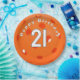 Fechamento de uma bola de picles laranja para um aniversário de 21 anos. Todo o texto pode ser alterado ou excluído.