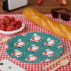 Placas festivas de festa de Natal de pijama com Papai Noel jogando piquenique.
